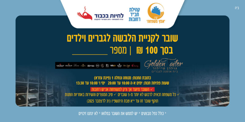 ✓ תוקף השוברים עד י"א טבת תשפ"ו (31/12/2025) בלבד