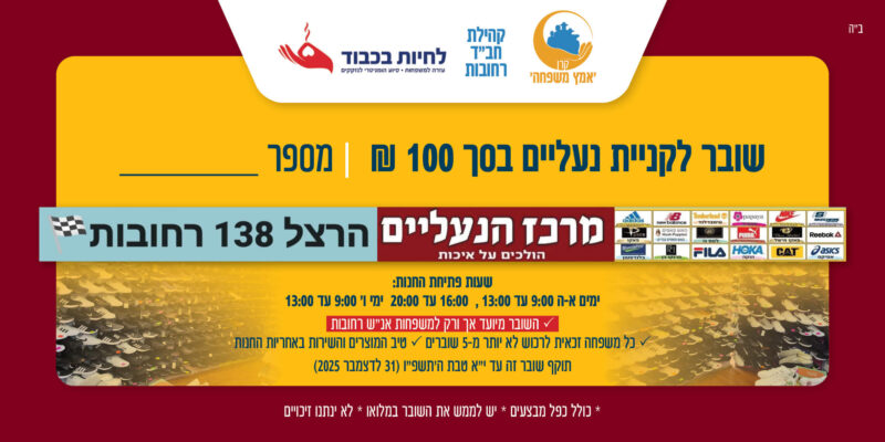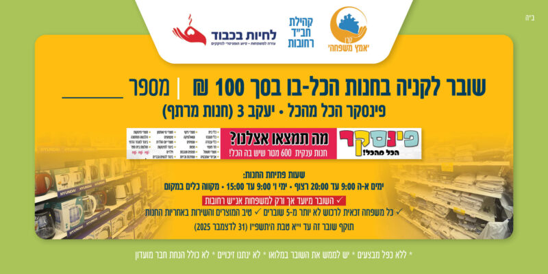 ✓ כל משפחה מאנ"ש רחובות זכאית לרכוש לא יותר מ-5 שוברים